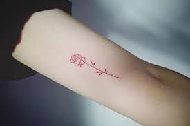 Red Ink Rose Tattoo On The Right Inner Arm Tatuajes Simples Tatuajes Vintage Tatuajes Minimalistas